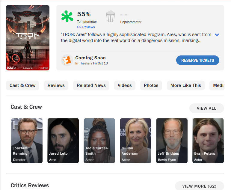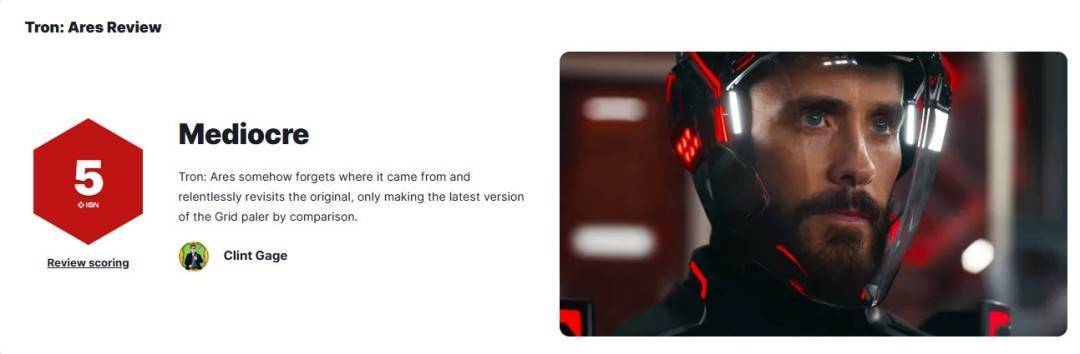迪士尼《创:战纪》系列新片《创:战神》中国内地定档10月17日上映(北美10月10日上映),今日影片媒体口碑解禁,《创:战神》IGN评分5分,MTC综合31家媒体,均分50分,烂番茄新鲜度55%。